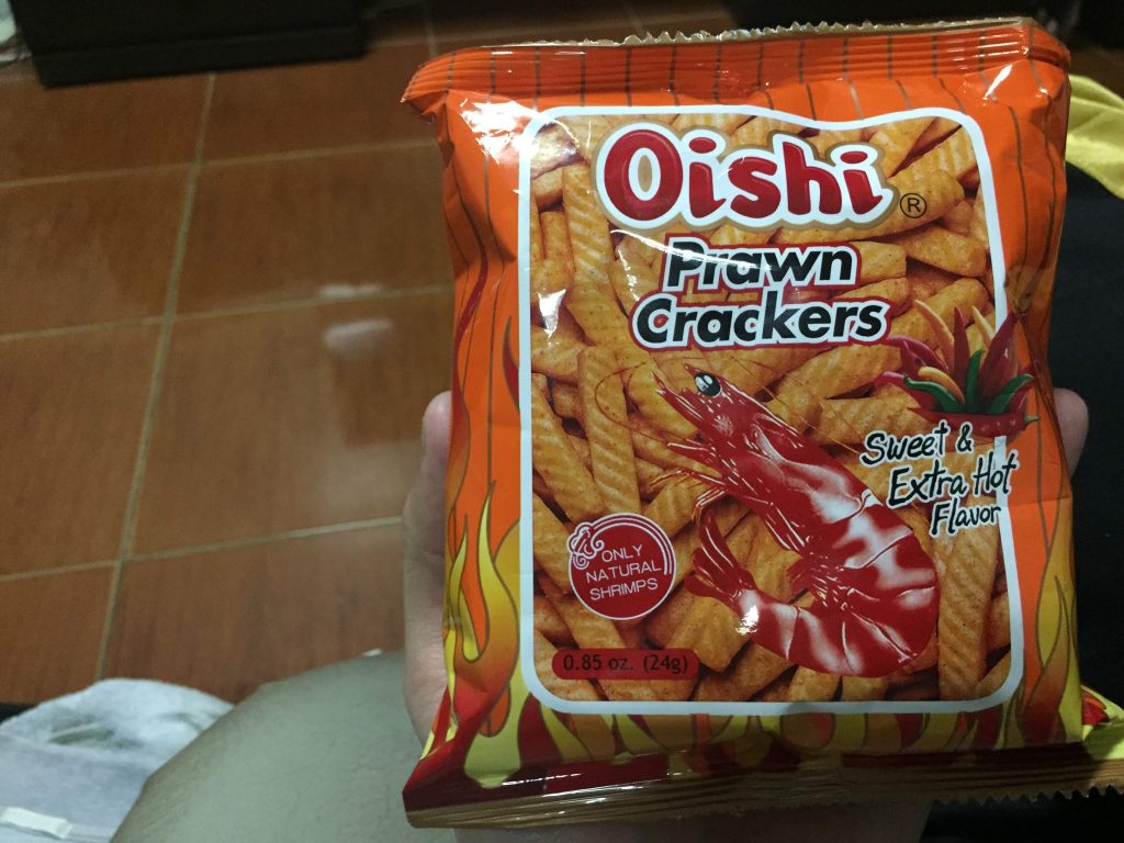 雖然他就是蝦味仙的複製人,但在菲律賓能吃到跟台灣口味相像的零食,心情還是挺不錯,有種他鄉遇故知的欣慰,即便我在台灣根本沒在吃蝦味仙,在菲律賓還是常常買這個Oishi Prawn Crackers來配電影吃。